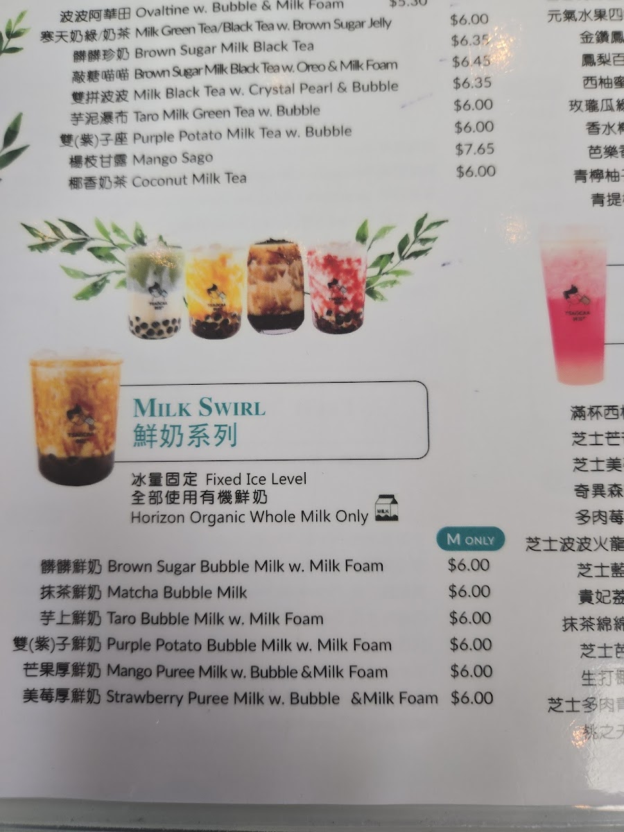 Beverages: Refresh yourself with their extensive bubble tea menu, featuring fan-favorites like brown sugar milk boba.
